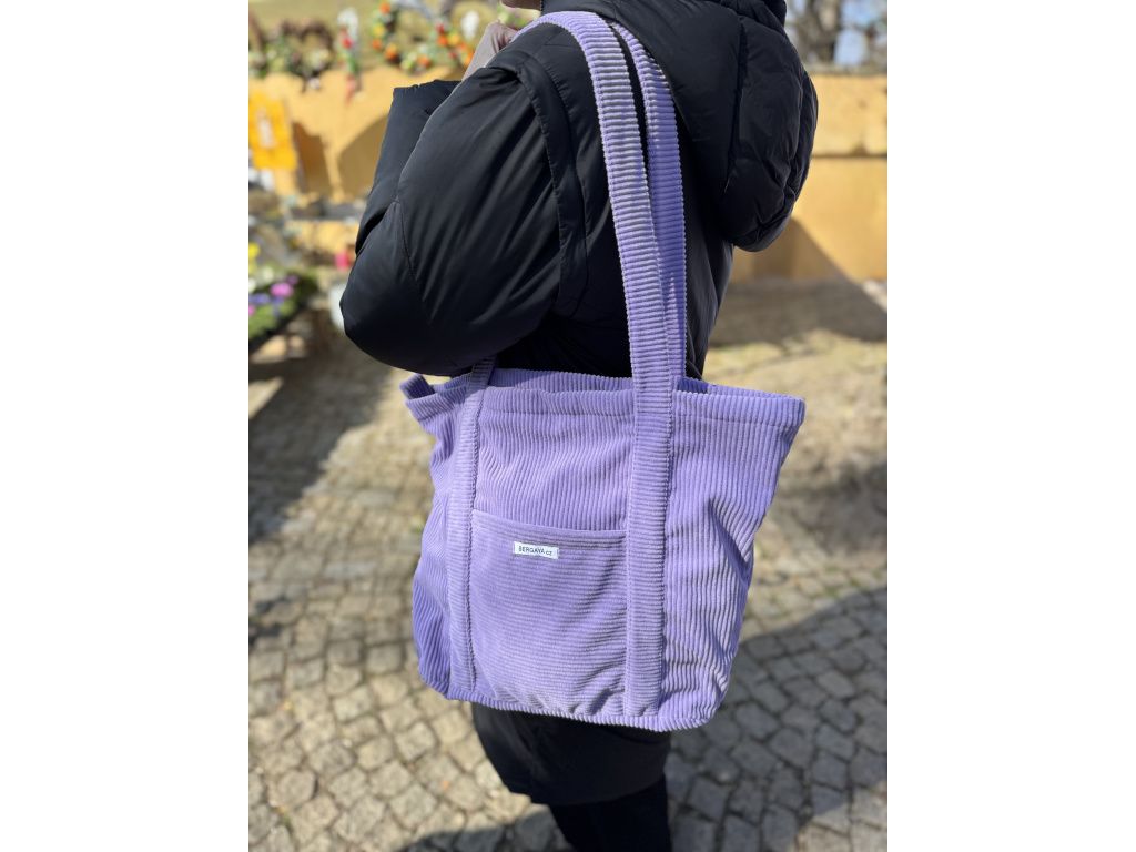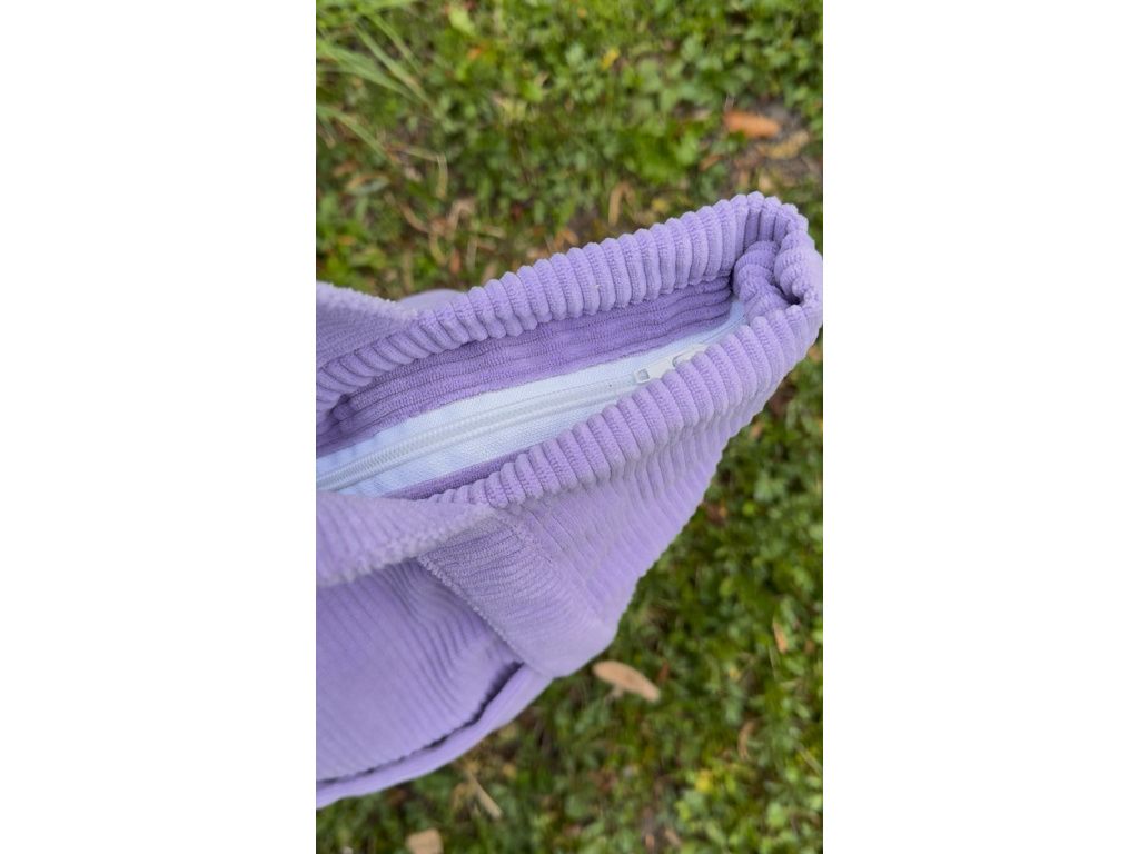 Ručně šitá manšestrová taška v jemném lila odstínu, která spojuje styl i praktičnost. Díky zapínání na zip máš všechny své věci v bezpečí, a přední kapsička je ideální na drobnosti, které chceš mít hned po ruce.